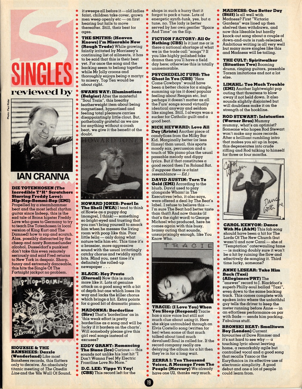 Here we have some scans from editions of Smash Hits magazines from across 1984.  These have been very kindly scanned and sent in by Darran Guy.
