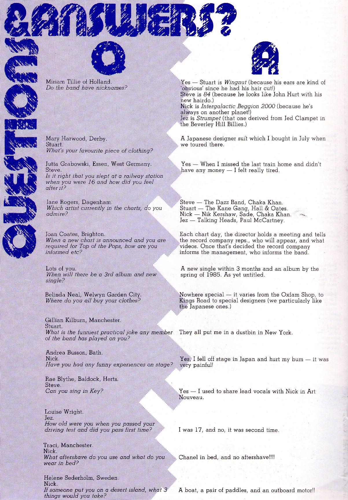 hi, i have that very picture that used to hang in the studio, the one thats hung up behind nick. steves mum gave it to me years ago. i have quite a bit of stuff from kajagoogoo days if u intrested, the boys look-in mag profiles and an artical they did in a music mag and a few other bits.
