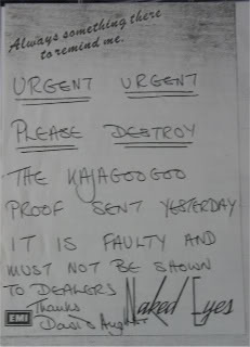 As for other items on the blog, there have been so many and there have been several that I’d really love to own.  One that really does pop into my mind is that original artwork collection owned by Denny.  It’s really special and it’s totally unique and it’s a brilliant item. I love his White Feathers Promo LP too, what an absolute gem with the ‘Urgent Urgent Please Destroy’ note!  If I had to choose one thing that I’d love to own, I’d have to combine five and go for the full set of KajaFax magazines, shared with us by Florian.  I’d dearly love to own those.