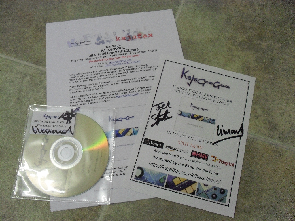 It features a signed promo CD, signed flyer and a press release.  These were produced in strictly limited numbers and this would therefore be a very rare piece of memorabilia, especially in its signed state.