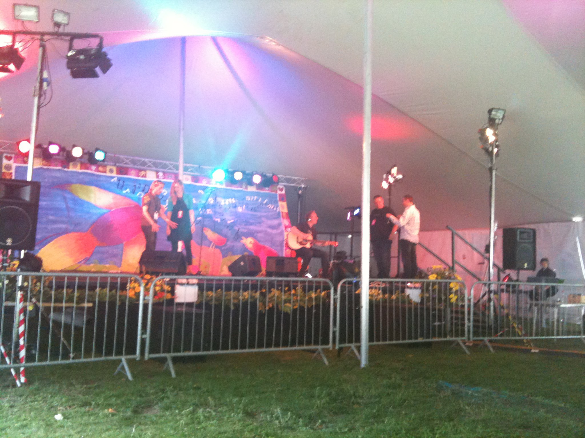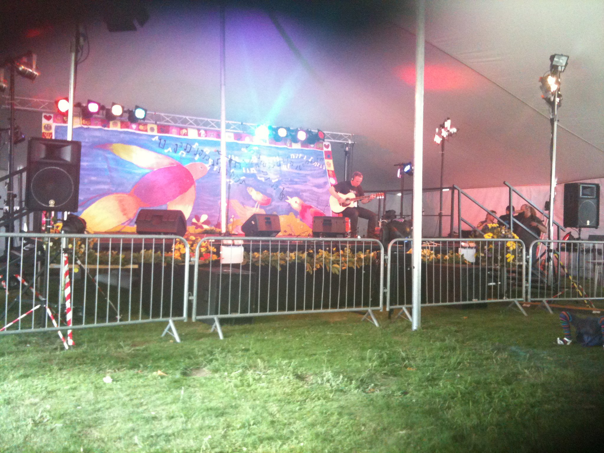 St. Mary’s Stage was a nice place to be, it was covered up and had rows of benches to sit on which was great!  We took our places on the front row of seats and watched as Steve had a sound check.  Soon to be joined by Lu for further sound checking.