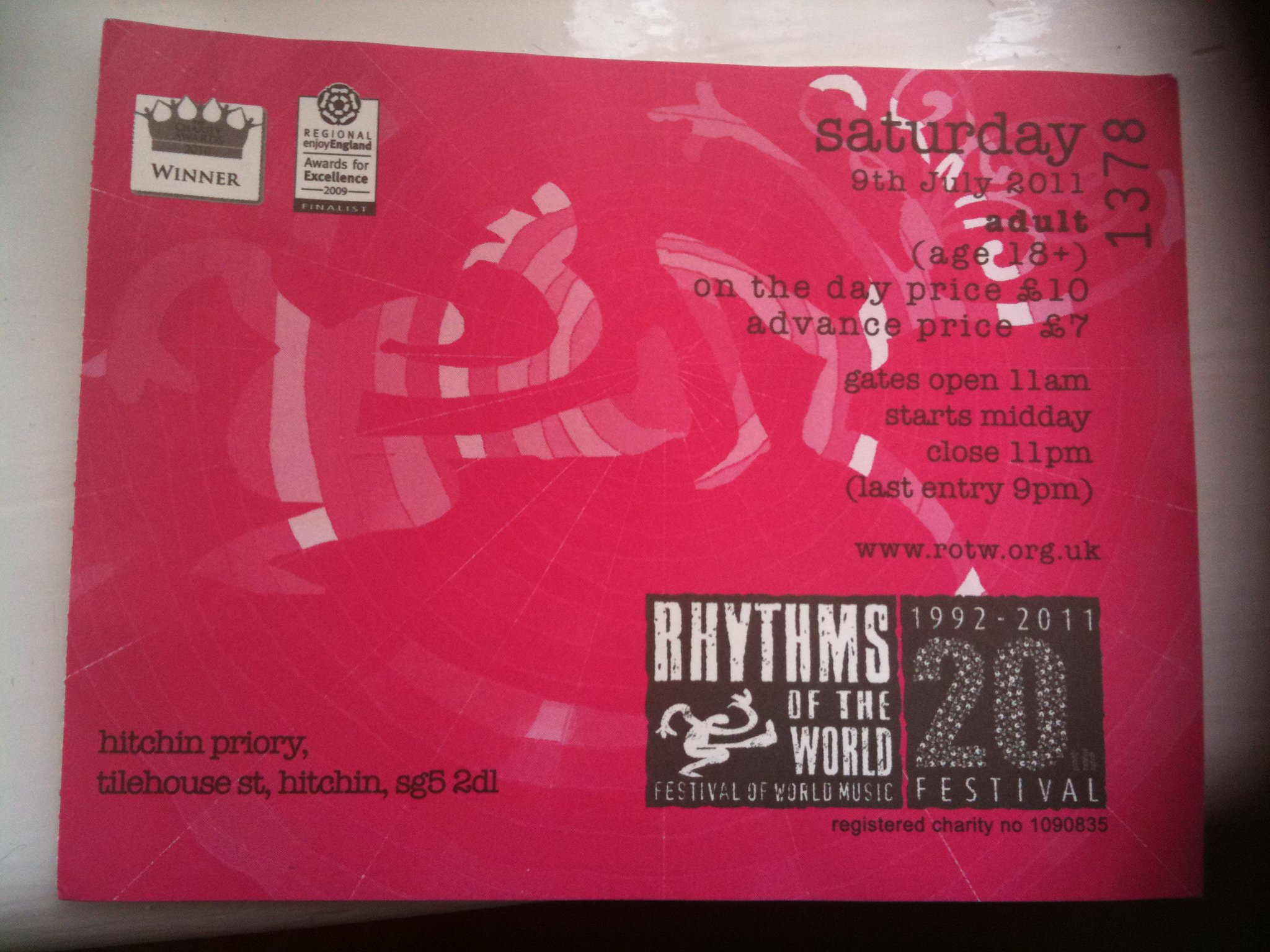 Yesterday along with my good friend Dave, I attended Rhythms of the World festival in Hitchin, Hertfordshire UK. Mainly to see three artists perform, but also just to hear some fantastic music and have a lovely day out.