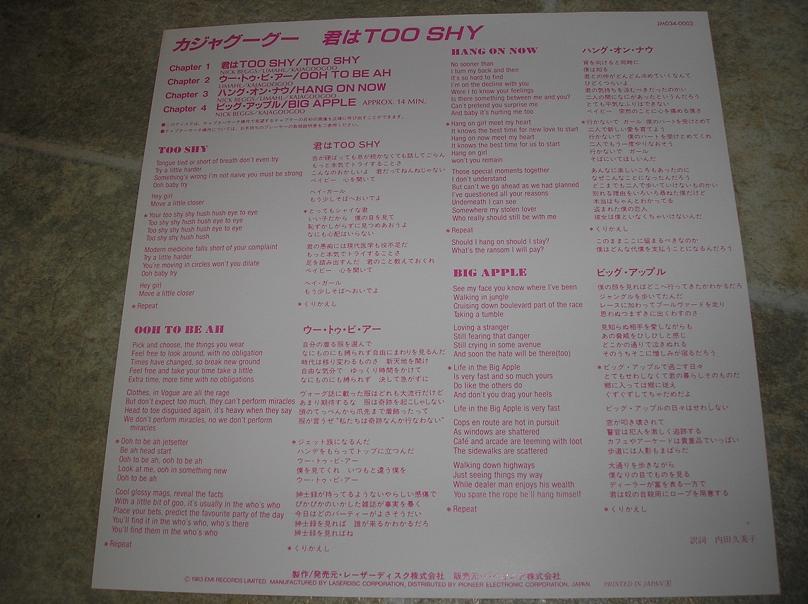Well, we at KajaFax have managed to source a copy of the revised ‘second edition’, to include lyric sheet and the addition of ‘Big Apple’ to the track listing.A Japanese release, the disc comes with its ‘obi’ strip and plays beautifully!