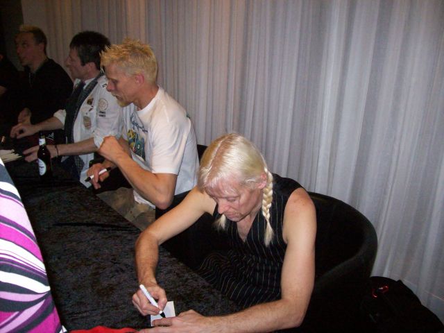 “After the concert at the meet and greet event, we stood in a row waiting to see Kajagoogoo. They sat behind a long a table waiting for us and I have to say were absolutely great! They talked with the fans, shook hands, signed autographs and so on. As I reached the table I was very, very excited. I was astonished as Nick told me that he had seen me standing at the pillar. There were so many people in the crowd and he had played the whole concert, but he had seen me! Nick is the member of Kajagoogoo I like best and now he has seen me! When I stood in front of Limahl I was so excited I couldn’t understand anything he said to me, so one of the guys from the staff translated everything for me! I felt very foolish at that moment, but did get a personal autograph from Limahl for my wife!”