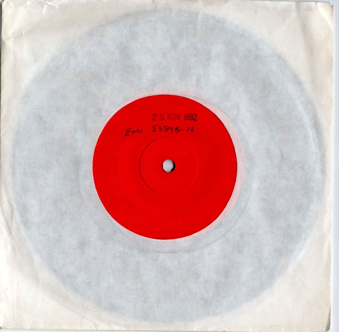 Here we have one of those early 7” vinyl test pressings, issued by EMI in November 1982: