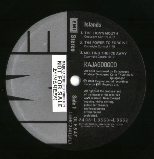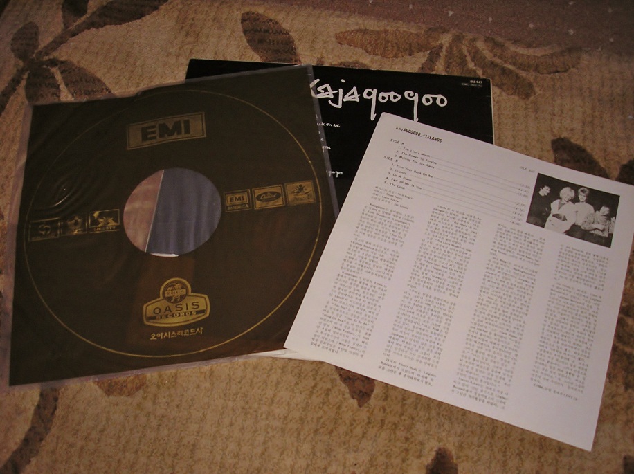 Today, we bring you this scarce Korean issue of the Islands album. Under ‘official’ license from EMI to Oasis Records, the album features an inner sheet with English lyrics and a fabulous, logo emblazoned PVC inner sleeve.