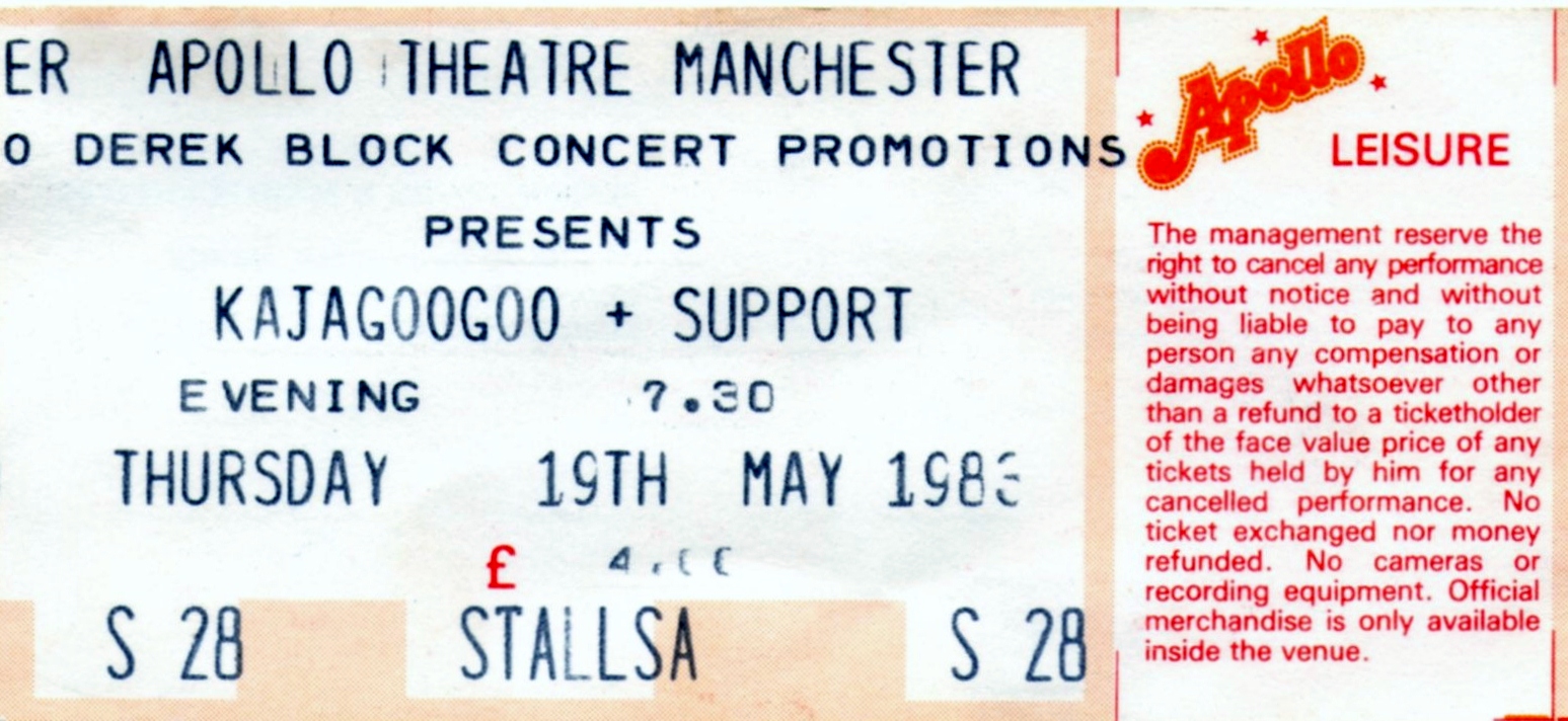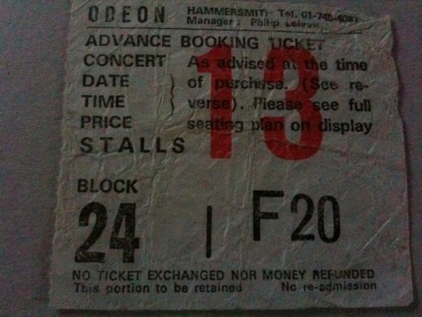 A huge thanks to Angie for this one – she was at the gig back in ’83 and kindly parted with her ticket after 29 years! It could not have gone to a better home!