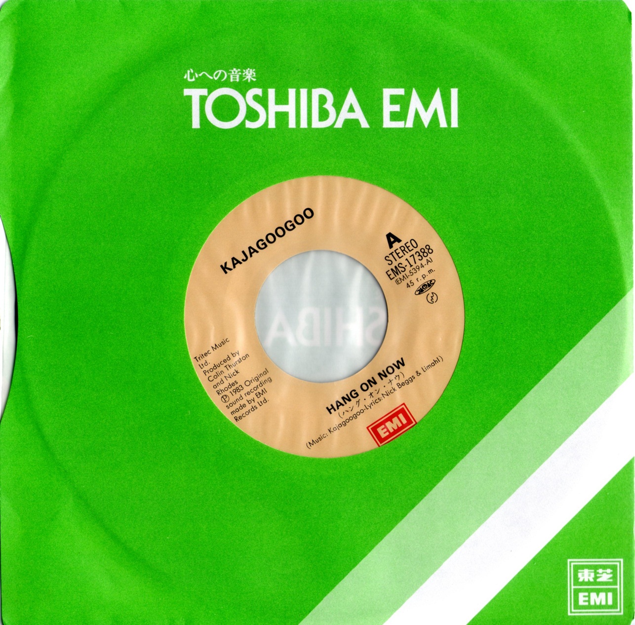 Today, we feature Kajagoogoo’s third global smash hit single Hang on Now.  The below images are scanned from the actual disc to give you the very best viewing pleasure in the highest detail.