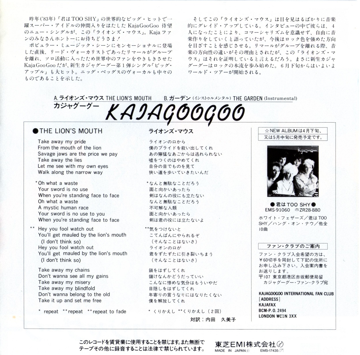 Kajagoogoo Japanese Collectors Series – 日本製 – Part 3 – ‘The Lion’s Mouth’