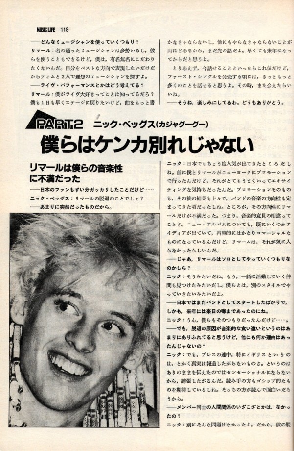 Music Life – Kajagoogoo and Limahl in Japanese Magazine – 1983