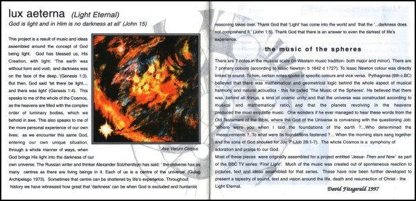 Back in 1997, Nick Beggs along with David Fitzgerald recorded an album of religious material entitled Lux Aeterna.