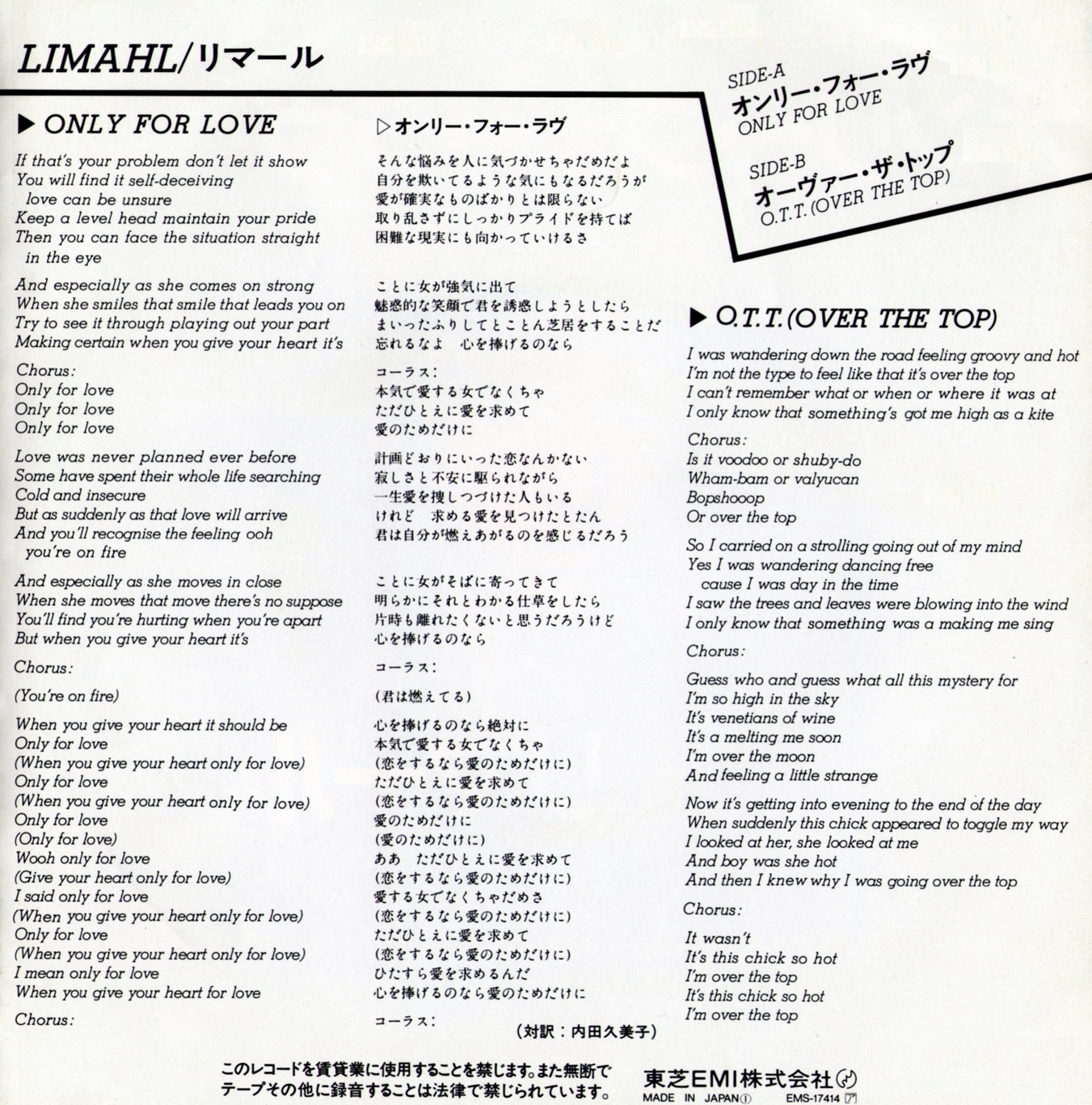Kajagoogoo Japanese Collectors Series – 日本製 – Part 7 – ‘Only for Love’ Promo Copy