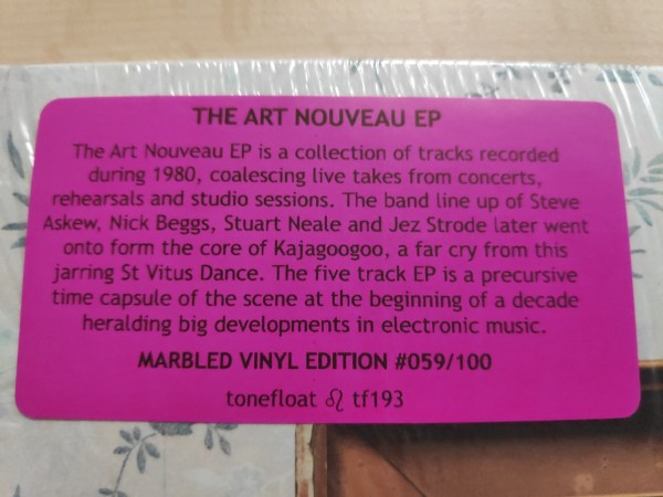 Hello KajaFans. You may remember we ran a feature back in November 2019 talking about the new Art Nouveau EP that was coming out to us on vinyl, in three colours. Well, that EP in all vinyl colours has landed through my door and I can now bring photos to you of how it looks. At this point, I have not decided whether to open the packaging so I have no shots of the actual vinyl itself here. I may crumble and bring this on a later post.